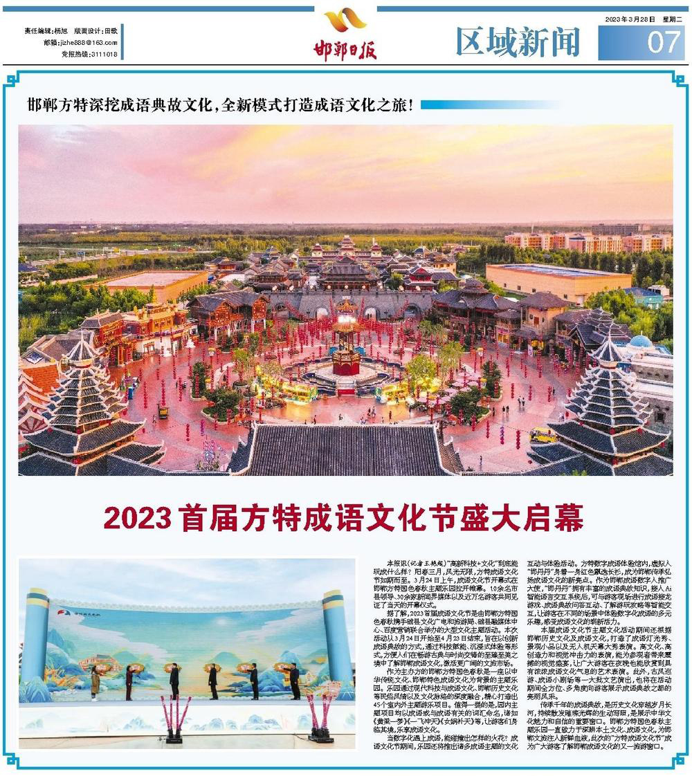 本報訊(記者王艷超)“高新科技+文化”到底能玩成什么樣?陽春三月,風(fēng)光無限,方特成語文化節(jié)如期而至。3月24日上午,成語文化節(jié)開幕式在邯鄲方特國色春秋主題樂園拉開帷幕。10余名市縣領(lǐng)導(dǎo)、30余家新聞界媒體以及近萬名游客共同見證了當(dāng)天的開幕儀式。據(jù)了解,2023首..