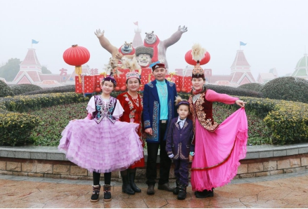 致敬建設者 華強方特盛邀哈薩克族家庭暢游主題樂園