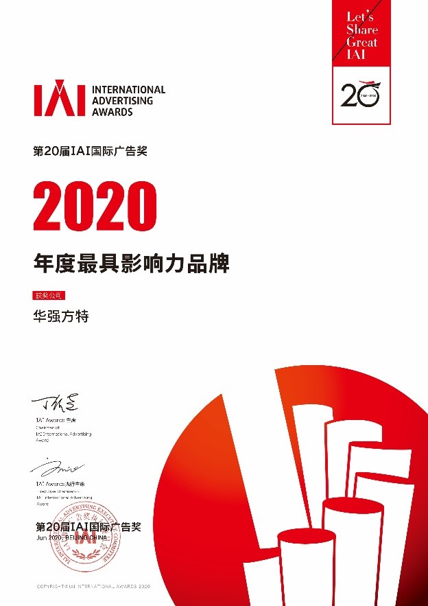 近日,IAI國際創(chuàng)享節(jié)2020暨第20屆IAI國際廣告獎與七星垂直大獎頒獎典禮在北京舉辦。華強方特獲頒IAI國際廣告獎2020“年度最具影響力品牌”大獎。