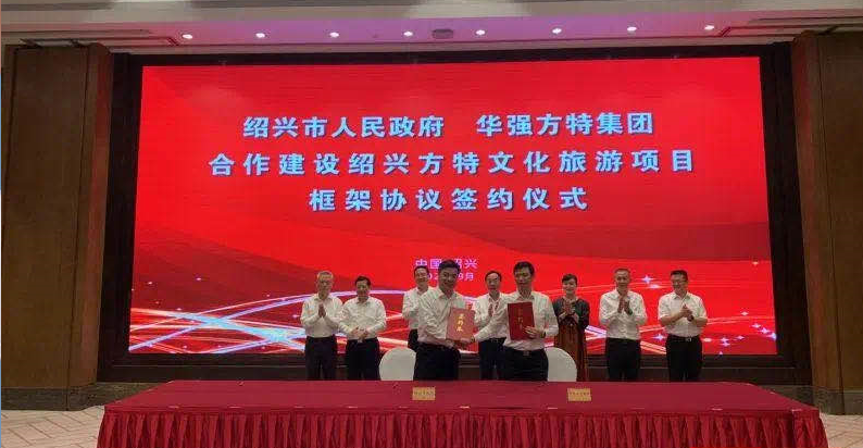 9月29日,紹興市人民政府與華強(qiáng)方特集團(tuán)關(guān)于合作建設(shè)紹興方特文化旅游項(xiàng)目協(xié)議簽約儀式在紹興舉行。紹興市委書記馬衛(wèi)光,華強(qiáng)方特集團(tuán)總裁劉道強(qiáng)等領(lǐng)導(dǎo)嘉賓出席簽約儀式并講話,紹興市委副書記、市長盛閱春致辭。