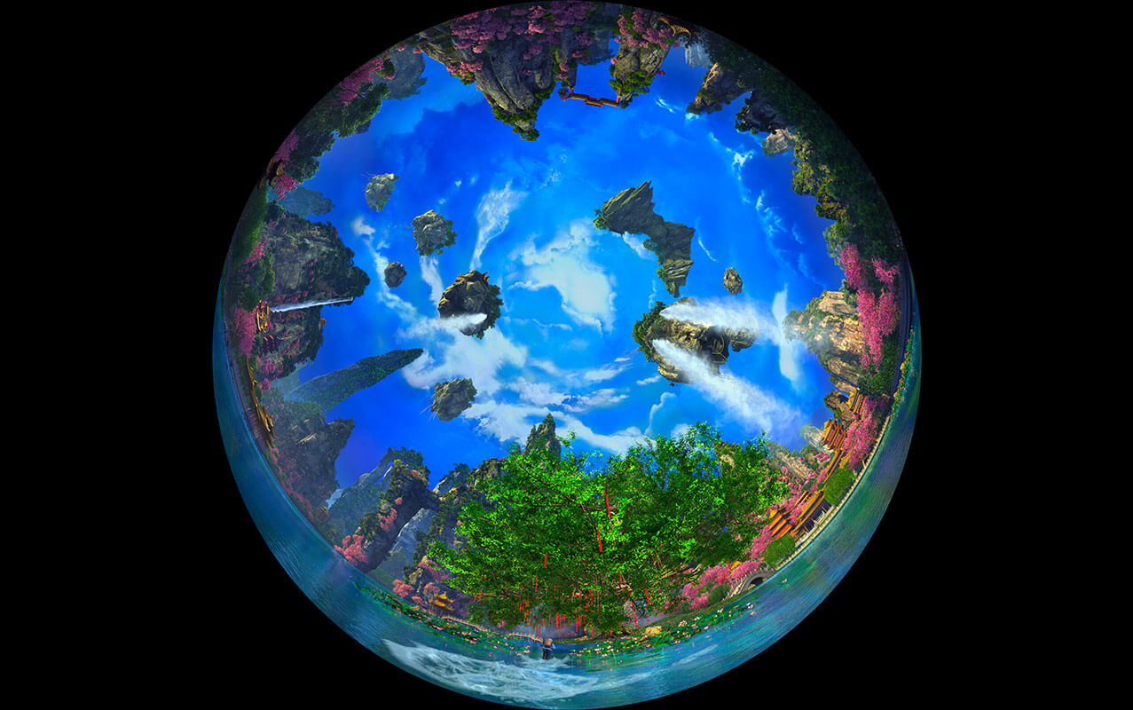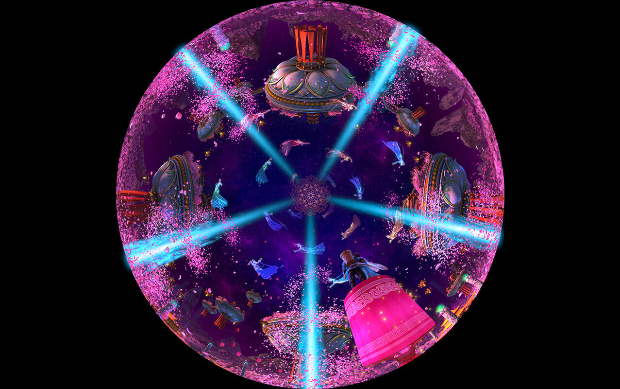 《牛郎織女》項(xiàng)目作為室內(nèi)升降式穹頂影片的代表。使用真人實(shí)拍結(jié)合三維的形式,重新演繹經(jīng)典愛情神話傳說“七夕鵲橋戀”。重點(diǎn)展現(xiàn)了牛郎飛上天庭尋妻,與織女鵲橋相會(huì)的情節(jié),并將其打造成為一個(gè)恢弘絢麗的魔幻歷險(xiǎn)題材主題項(xiàng)目。